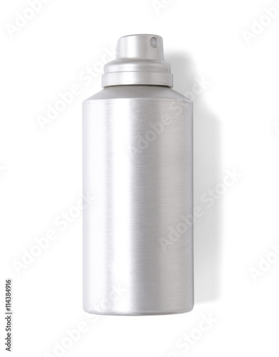 Aerosol can - A plain brushed metal silver spray tin isolated on a white background