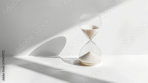 Aesthetic modern hourglass on a clean white background, copy space, strong shadows. Minimalism template. Generative AI