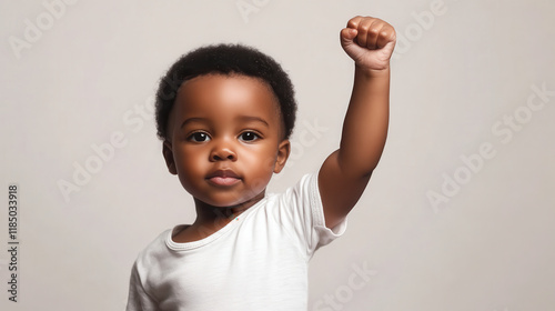 African American Child with Raised Fist for Black History Month