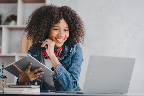african american female students studying online using laptop online meeting