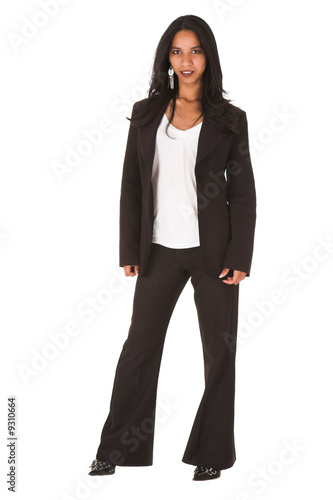 adult, african, beautiful, beauty, black hair, business, businesswoman, tied-up, healthy, human, indian, modern, people, person, petite, small, racked, standing, straight hair, suit, white background, woman, woman, work, men at work, working, young adult