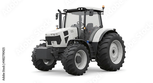 Agricultural Tractor Isolated on White, Heavy Farm Equipment