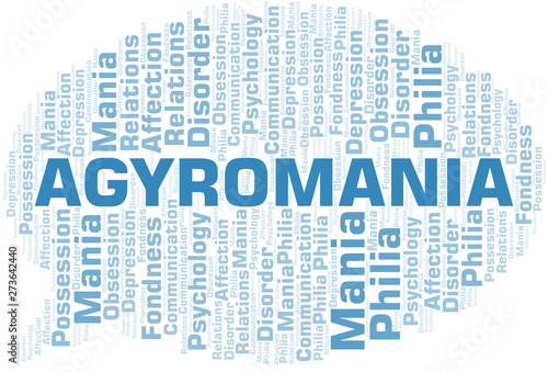 Agyromania word cloud. Type of mania, made with text only.