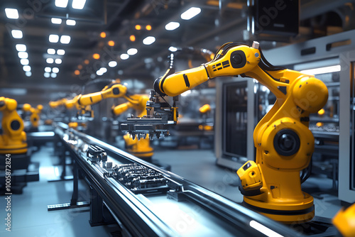 工場の自動化ロボット。高度なAI制御による生産ラインの効率化