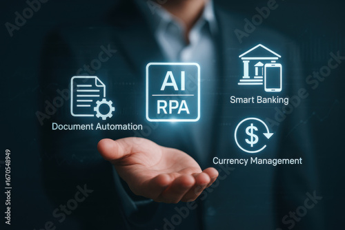 ai, automation, technology, banking, currency, management, document, digital, finance, business, innovation, futuristic, hand, interface, icon, communication, connection, datum, money, transaction, system, network, touch screen, modern, electronic, software, application, user, control, virtual