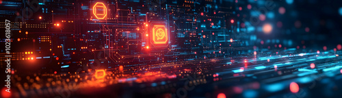AI Driven Data Processor Vector with Glowing Icons & Growth Lines | Expertise & Business Data Growth Illustration for Infographics