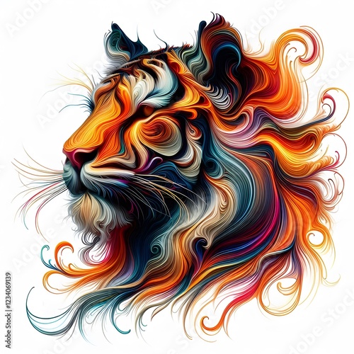 AI Generate of Abstract colorful dynamic fire lines forming tiger head, isolated in white