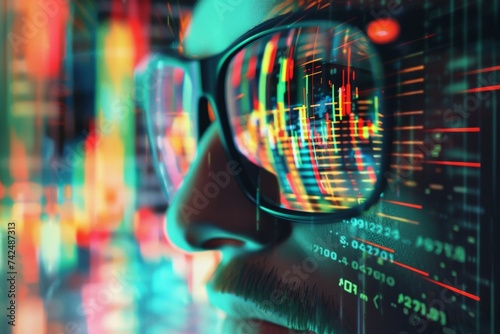 AI generated holographic advisor reflected on eyeglasses to optimize pricing strategies