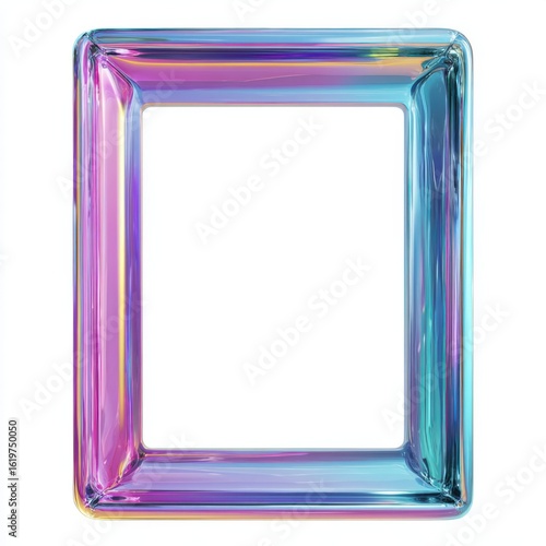 frame, border, rectangle, holographic, iridescent, chrome, metallic, shiny, glossy, reflective, gradient, colours, spectrum, rainbow, purple, blue, pink, teal, vibrant, modern, abstract, design, element, graphic, decoration, object, studio, cut-out, empty