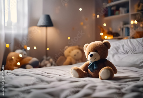 ai, generative, apartment, bed, bedding, bedchamber, bright, children, comfort, cosy, decor, decoration, design, furniture, home, illustration, indoor, interior, children, room, soft, stuffed, stylish, toy, window