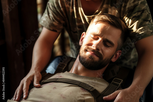 ai, art, artificial, composite, concept, content, creative, design, generative, graphic, illustration, intelligence, portrait, medicals, medicine, nursing, patient, professional, recovery, rehabilitation, trauma, treatment, lifestyle, health, health care, young, person, smile, happy, 116, relax, rest, massage, sport, massager, procedure, therapy, physical, healer, well-being, wellness, instructor, osteopathy, male, man, salon, spa, beauty