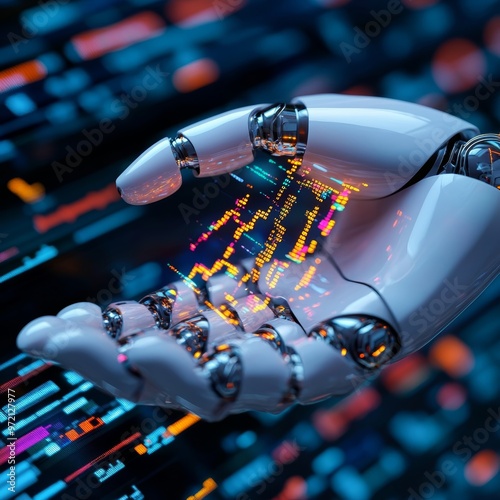 ai, artificial intelligence, robot, hand, datum, chart, growth, market, stock exchange, trend, digital, coding, screen, technology, future, progress, innovation, automation, futuristic, business, finance, economy, investment, trading, software, cyber, cybernetic, robotic, computer science, programming