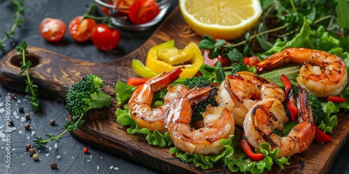 ai, crafted, shrimp, salad, seafood, vegetable, healthy, wooden, chopping board, favor, fresh, delicious, cooking, meal, nourishment, culinary, art, epicure, epicure, diet, organic, ingredient, presentation, food photography, taste, healthy eating, receipe, kitchen, chef, dining, appetence, enjoyment, mealtime, colours, texture, healthy lifestyle, fresh produce, alimentary, food preparation, vibrant