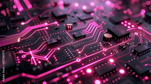 AI-driven network map, dark slate grey backdrop, radiant pink circuits, pulsating nodes, sophisticated and high-tech.