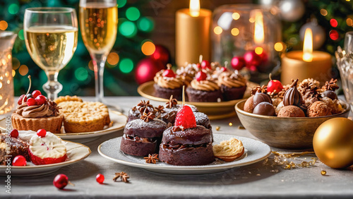 AI-generated images of Christmas spirits, with a mouth-watering spread of decadent desserts
