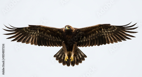 Aigle royal puissant en vol plan� majestueux ses ailes dor�es largement d�ploy�es sous un ciel clair et lumineux. AI Generated