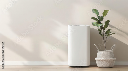 minimalist, interior, modern, white, air, purifier, pot, plant, plaster bandage, soft, control, filter, vase, ozone, upgrade, bright, schedule, flower, scrubber, odour, lifestyle, space, table, decor, indoor, relief, wellness, style, live, device, design, standard, nature, comfort, warmth, beauty, appliance, shadow, stylish, room