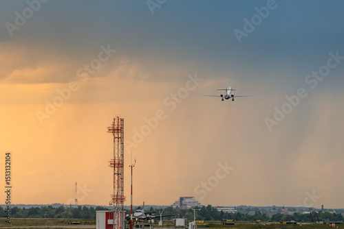 sunset, sky, industry, sun, tower, sunrise, construction, silhouette, crane, city, cloud, electricity, power, sea, landscape, evening, plane, aeroplane, morning, landing, nature, blue, aerodrome, water, orange