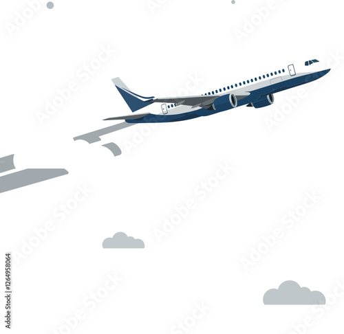aeroplane, flight, take-off, cloud, design, flat, vector, digital, art, travel, transport, blue, grey, shape, sky, simple, minimal, illustration, graphic, modern, motion, concept, air, aviation, journey, vehicle, nature, altitude, freedom, speed, silhouette, scenery, background, horizon, outline, view, exploration, style, creative, artistic, form, symbol, environment