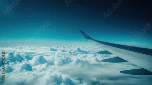 aeroplane, wing, cloud, sky, blue skies, white cloud, travel, aerial view, high altitude, flight, journey, adventure, vacation, holiday, freedom, transportation, perspective, nature, atmosphere, landscape, horizon, abstract, background, texture, pattern, wallpaper, photo, air travel, aviation, airliner, cloudscape, dream, wanderlust, escape, above the clouds, altitude, air, fluffy, soft, white, blue