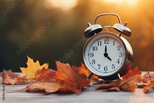 Alarm clock autumn table. Generate Ai