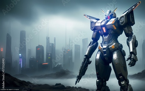 alien robot android cyborg machine futuristic in the cyberpunk city, digital art