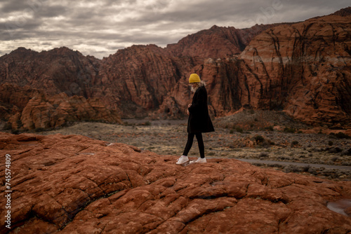 white shoes, utah, red rock, arizona, nature, overcast, adventure, learning, people, geology, hiking, mature adult, adult, freedom, majestic, connection, exploration, escapism, female, lifestyle, sandstone, avocation, rock formation