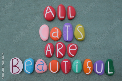 All cats are beautiful, creative slogan composed with multicolored stone letters