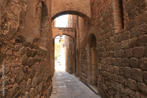 architecture, old, street, stone, ancient, arch, building, wall, church, travel, mediaeval, city, narrow, town, tunnel, europa, historic, alley, door, brick, tour tourism, history, corridor, interior, tuscany, italy