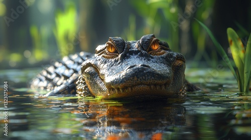 Alligator in swamp water, close-up.