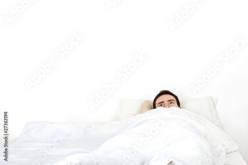 Alone young man in a bed