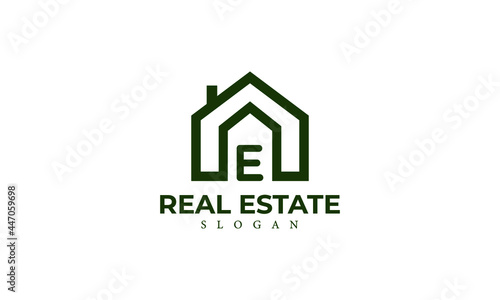 Alphabet E Real Estate Monogram Vector Logo Design, Letter E House Icon Template