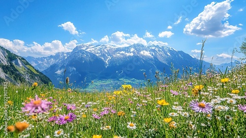 swiss alps, mountain, wildflower, landscape, nature, scenery, alpine, summer, blue skies, cloud, panorama, breathtaking, vibrant, majestic, idylli, serene, calmness, beauty, travel, destination, switzerland, europa, hiking, adventure, meadow, flower, snow-capped, peak, vale, picturesque, stunning, wanderlust, paradise, natural beauty, fresh air, sunshine, cloudscape, floral, bloom, blossom, springtime, peaceful