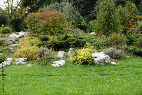 alpine, slide, landscape, design, park, flora, spring, beautiful, season, floral, natural, landscaping, decorative, background, plant, gardening, summer, green, nature, flower, garden, big, shrub, horticulture, botanical, decoration, large, boxwood, oriental, tree, rock, ornamental, evergreen