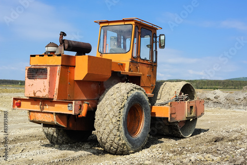 Alte orange Walze auf Baustelle