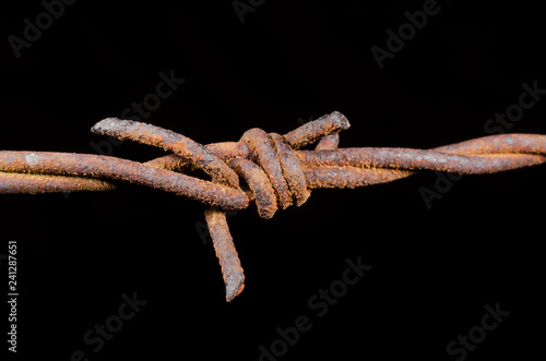 barbed wire, wire, limit, fence, separate, gridiron, aged, rusted, rusted, metallic, hostility, macro, detail, closeup, black, contrast, isolated