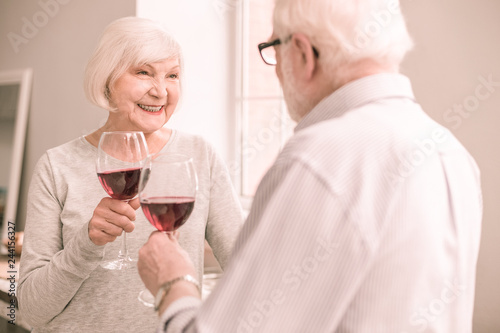 Amazing retired woman smiling to her partner