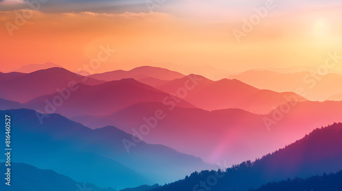 Amazing silhouettes of a mountains at colorful sunset in summer in Slovenia Landscape with mountain ridges in fog golden sunlight and clouds in the evening Nature Hills in sunlight Sce : Generative AI