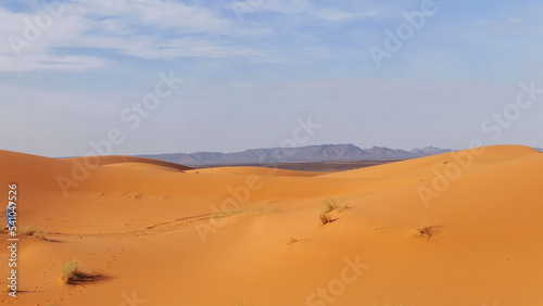 Amazing view of beautiful Sand dunes of the Sahara desert with a mountain in the background, Morocco