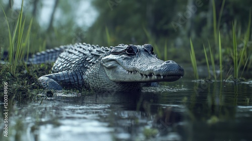 alligator, american, crocodile, reptile, swamp, marsh, water, nature, wildlife, wild, animal, beast, predator, scale, teeth, jaw, eye, head, body, tail, skin, green, brown, grey, murky, vegetation, grass, reed, environment, habitat, wilderness, jungle, forest, outdoors, day, summer, spring, autumn, closeup, portrait, dangerous, powerful, fierce, majestic, ancient, creature, fauna, flora