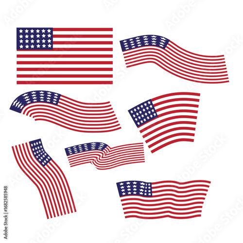 American flag set, USA waving flag collection, United States