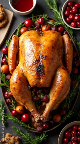 American Roast Turkey with Stuffing and Cranberry Sauce for Thanksgiving