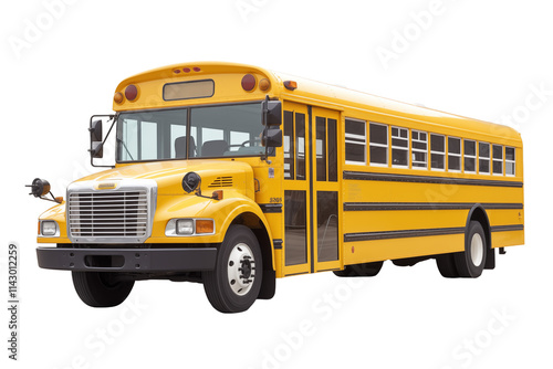 American Yellow School Bus Isolated on White Background for Education, Kids Transportation, and School Transport Concept. Png cut out. Isolated image. Bus topics.
