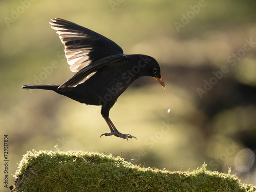 village, blackbird, black, orange, beak, park, cemetery, city, body of water, meadow
