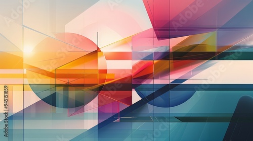 An abstract artwork with a focus on geometric forms and color gradients. The scene includes intersecting shapes