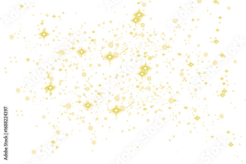 An abstract burst of star light effects PNG, with golden particles and glittering diamonds. Perfect for festive overlays.