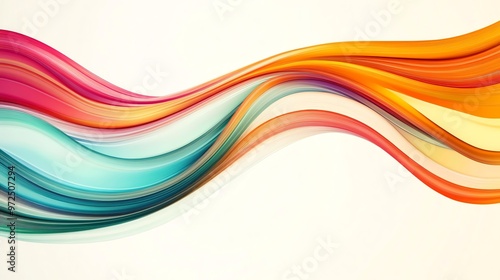An abstract, colorful wave design in shades of red, orange, yellow, blue, and green against a white background.