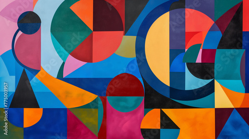 An abstract composition of geometric shapes in bold colors, creating a dynamic and visually captivating artwork