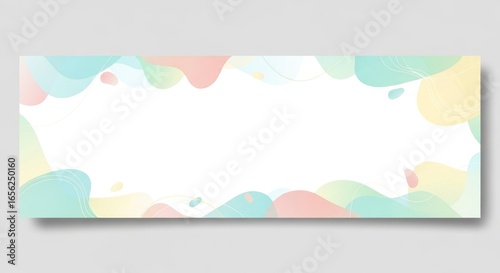 An abstract white banner is bordered with pastel shapes lines and gradients