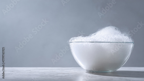An aesthetic glass bowl filled with fluffy, ethereal smoke